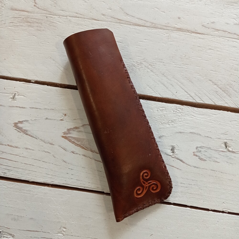 Funda de gafas en cuero de 1ª calidad, con simbolo de Trisquel grabado.