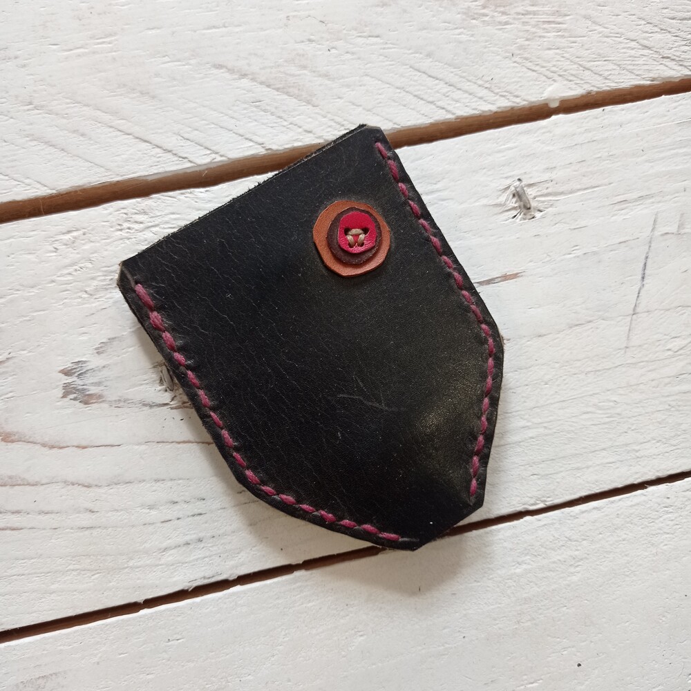 Llavero de cuero cosido a mano con hilo encerado.