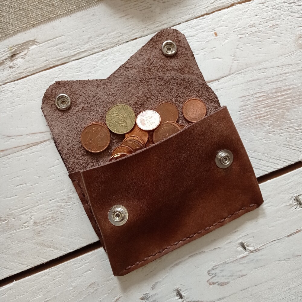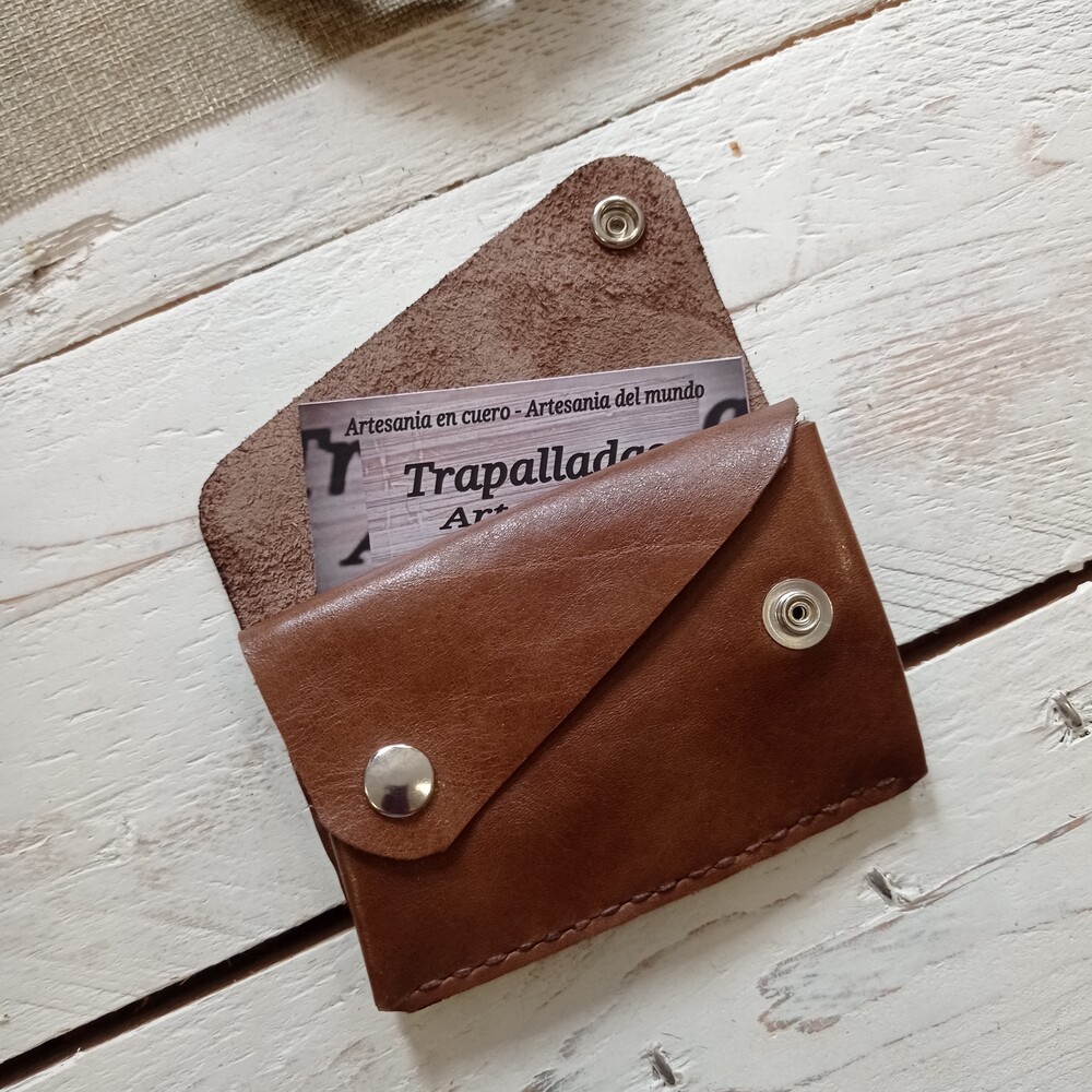 Cartera de cuero con capacidad para tarjetas ,billetes y monedas.