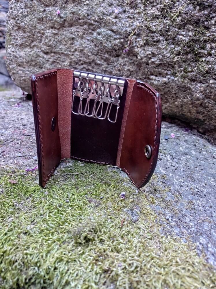 Cartera multi llaves de cuero con espiral celta grabada en el exterior.