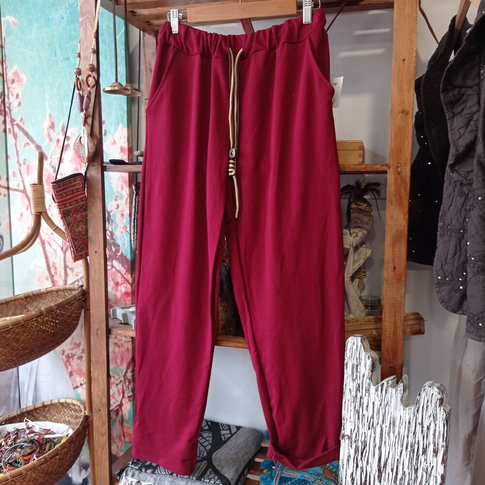 Pantalón de punto frio con cintura elástica y ajustable.